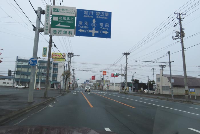 国道39号、北見トヨペット前からとん田通り交差点方向