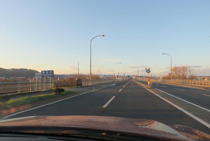 とん田通り、無加川橋を渡り錦町の南岸通り交差点交差点
