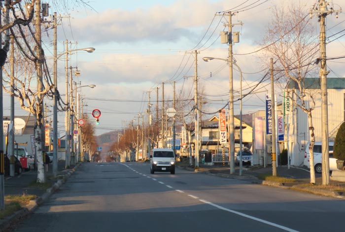 午前6時50分、南岸通り、野付牛自動車学校前から無加川町方向