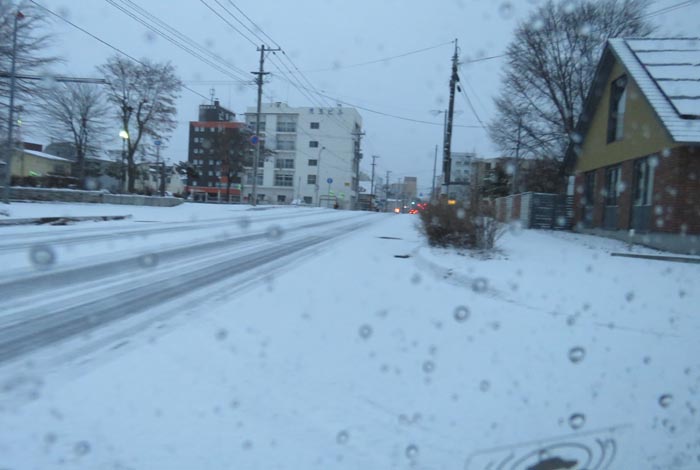 午前6時50分、松浦水産駐車場裏の通りを北3条通り側から北4条通り方向