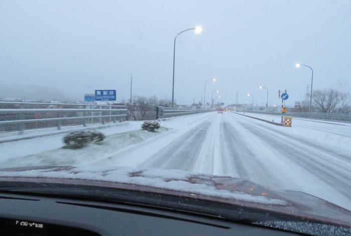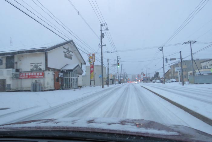 午前6時50分、西3号線とん田通りの北見中央病院前から無加川橋方向
