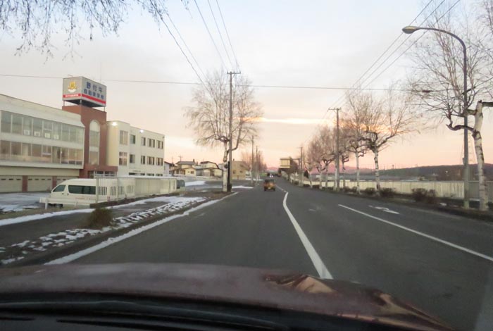 午前6時50分、南岸通り、野付牛自動車学校前から無加川町方向