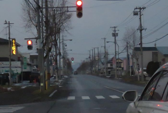 午前6時50分、南岸通り、野付牛自動車学校前から無加川町方向