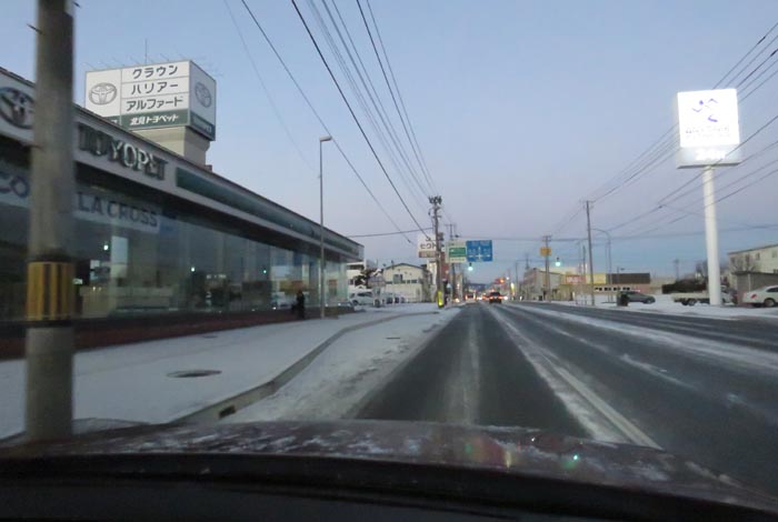 午前6時30分、北4条通りの国道39号交差点から緑園通り方向