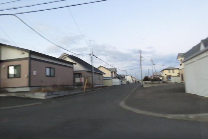 産岸通りから左折して西5号線のバス停前から北光通り方向