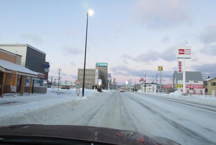 午前6時50分、北4条通りの国道39号交差点から緑園通り方向