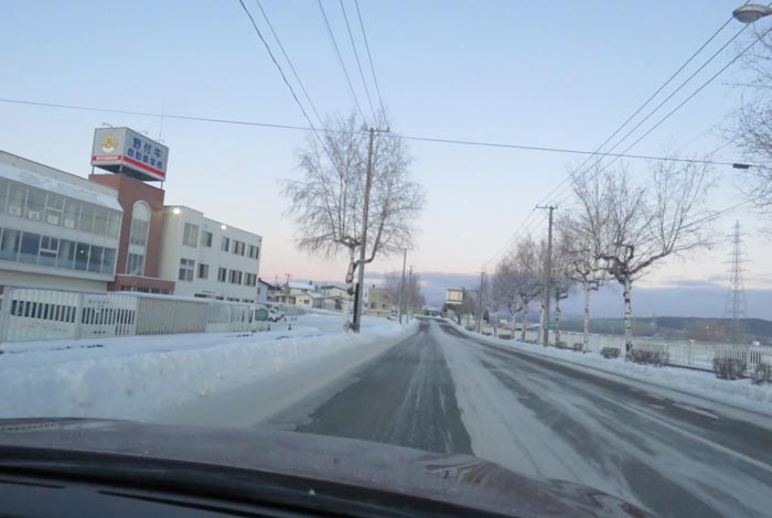 午前6時50分、南岸通り、野付牛自動車学校前から無加川町方向