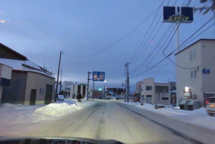 午前6時30分、松浦水産駐車場裏の通りを北3条通り側から北4条通り方向