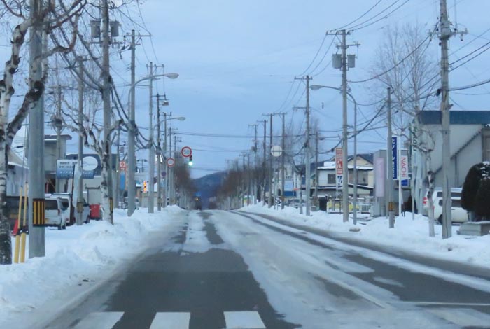 午前6時50分、南岸通り、野付牛自動車学校前から無加川町方向