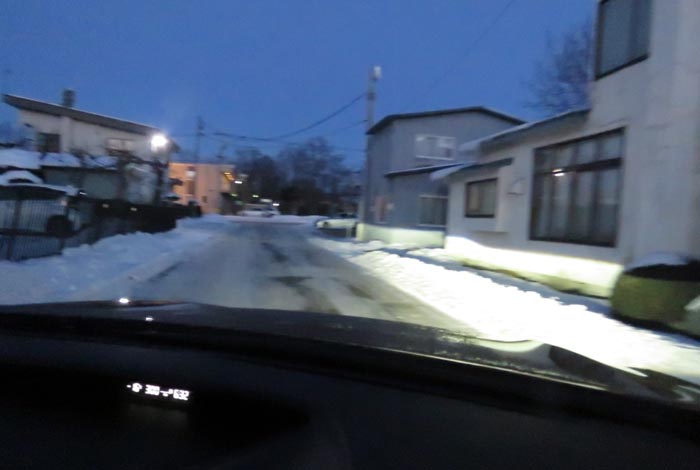 午前6時30分、松浦水産駐車場裏の通りを北3条通り側から北4条通り方向
