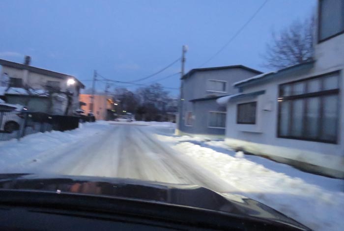 午前6時30分、松浦水産駐車場裏の通りを北3条通り側から北4条通り方向