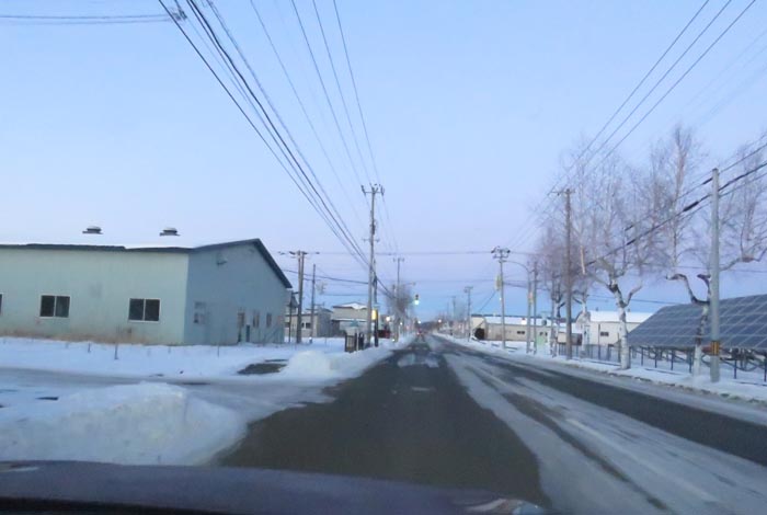 午前6時50分、南岸通り、野付牛自動車学校前から無加川町方向