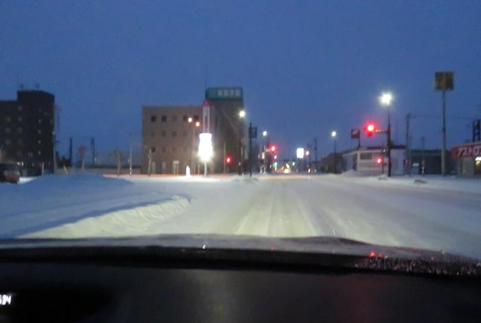 午前6時50分、北4条通りの国道39号交差点から緑園通り方向