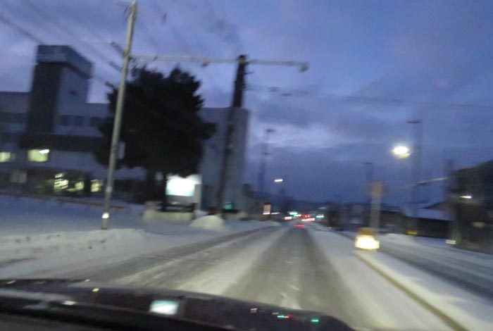 午前6時50分、西3号線とん田通りの北見中央病院前から無加川橋方向