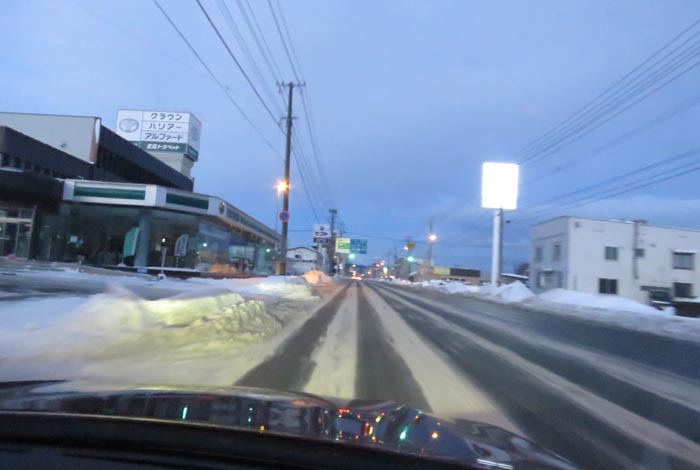 午前6時50分、北4条通りの国道39号交差点から緑園通り方向