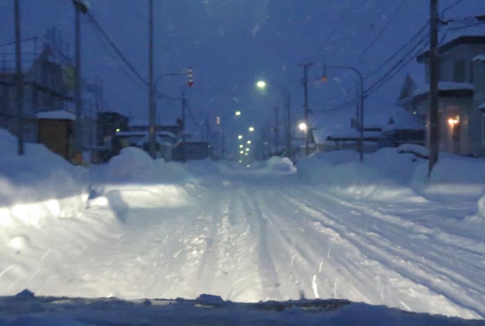 産岸通りから左折して西5号線のバス停前から北光通り方向