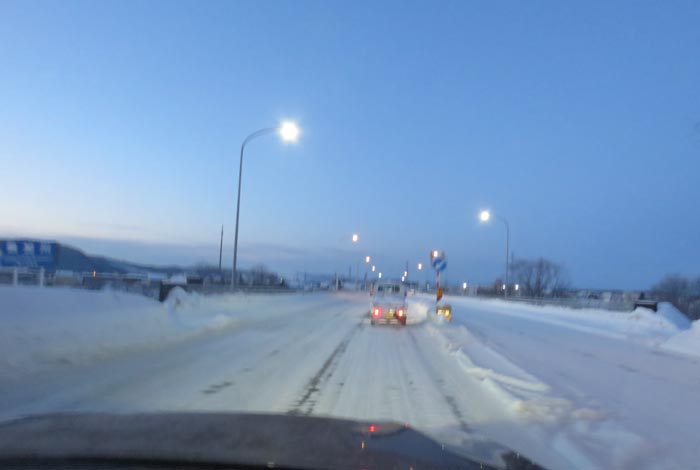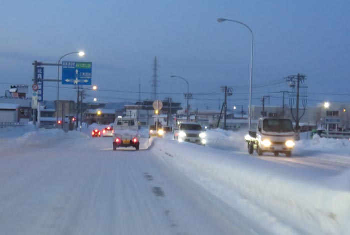 午前6時30分、西3号線とん田通りの北見中央病院前から無加川橋方向