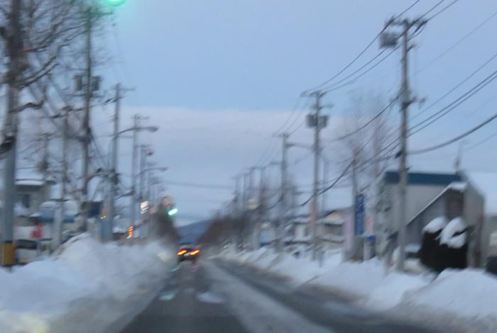 午前6時50分、南岸通り、野付牛自動車学校前から無加川町方向