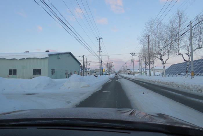 午前6時50分、南岸通り、野付牛自動車学校前から無加川町方向