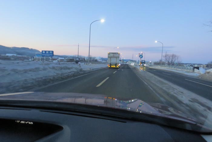 午前6時30分、西3号線とん田通りの北見中央病院前から無加川橋方向