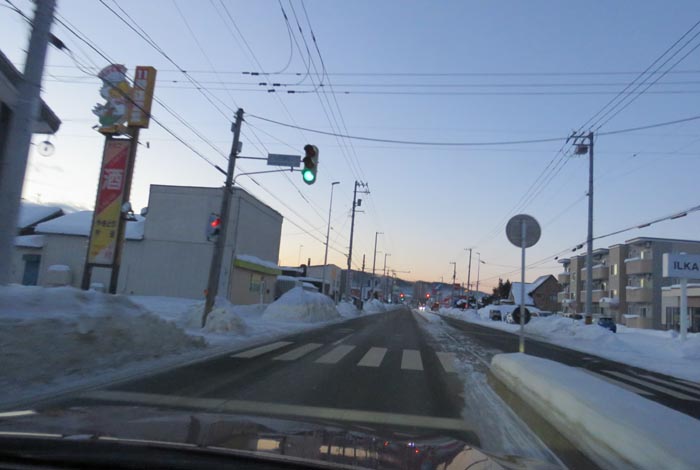 午前6時30分、西3号線とん田通りの北見中央病院前から無加川橋方向