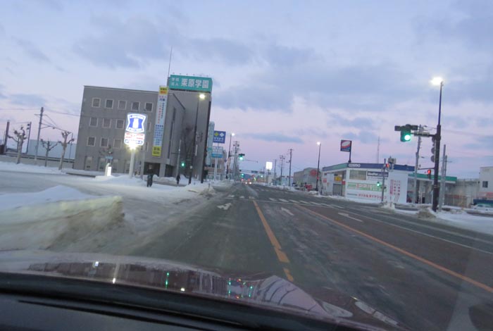 午前6時20分、北4条通りの国道39号交差点から緑園通り方向