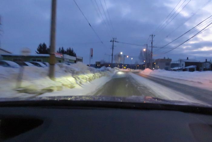 末広町の南岸通り、西4号線バス停前から野付牛自動車学校方向