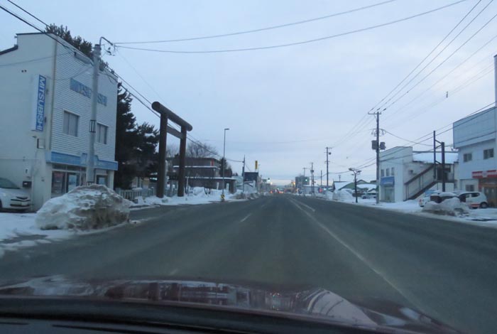 国道39号、北見神社の鳥居前から東9丁目歩道橋方向