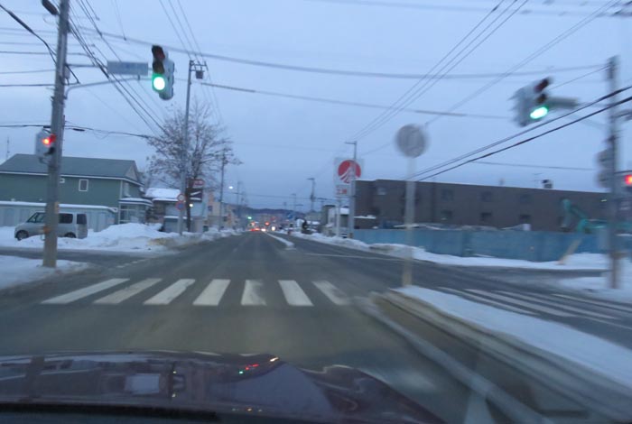 午前6時10分、西3号線とん田通りの北見中央病院前から無加川橋方向