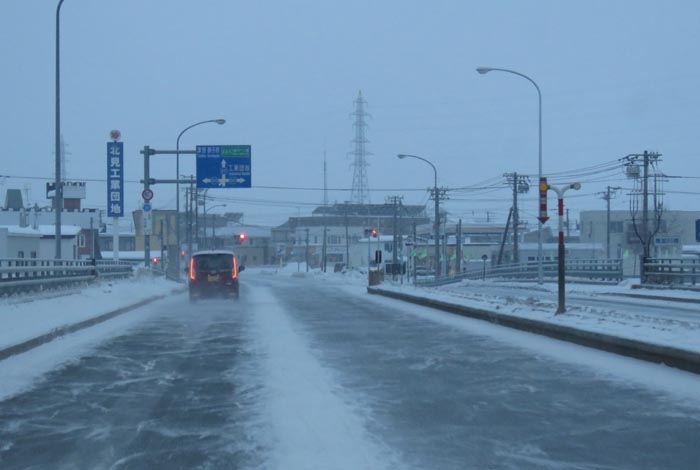 午前6時30分、西3号線とん田通りの北見中央病院前から無加川橋方向