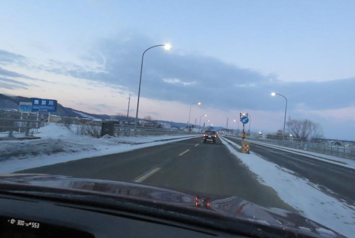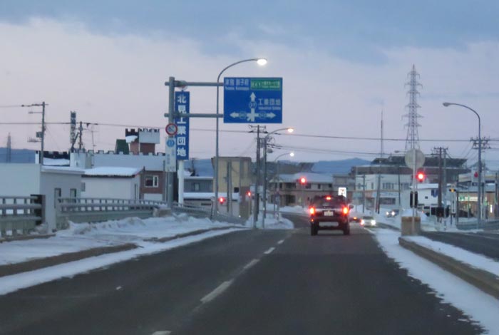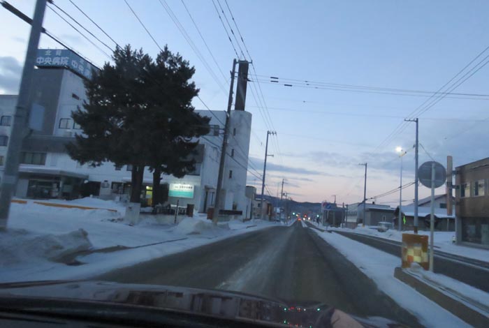 午前5時50分、西3号線とん田通りの北見中央病院前から無加川橋方向