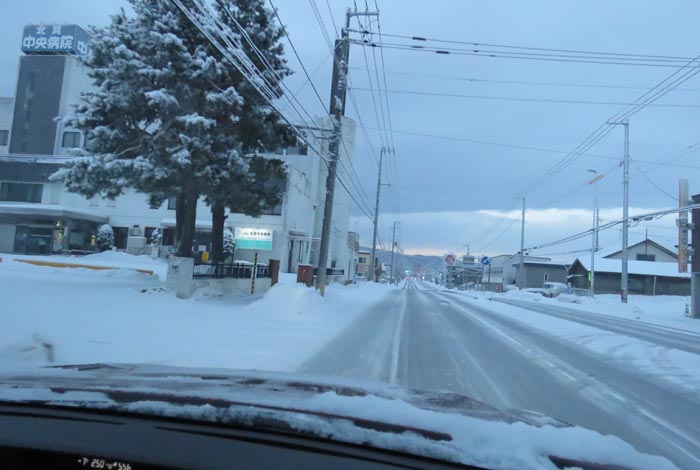 午前5時50分、西3号線とん田通りの北見中央病院前から無加川橋方向