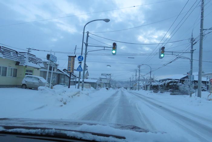 午前5時50分、錦町の南岸通りをとん田通り交差点から花園町の常盤通り方向