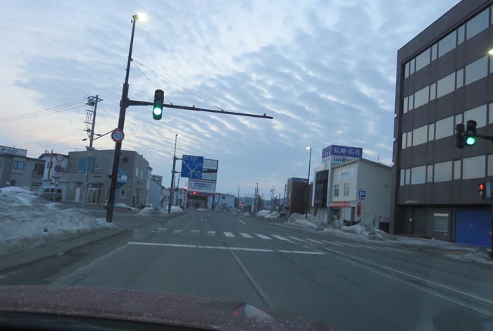 北1条通り、西4丁目通り交差点から右は跨線橋方向