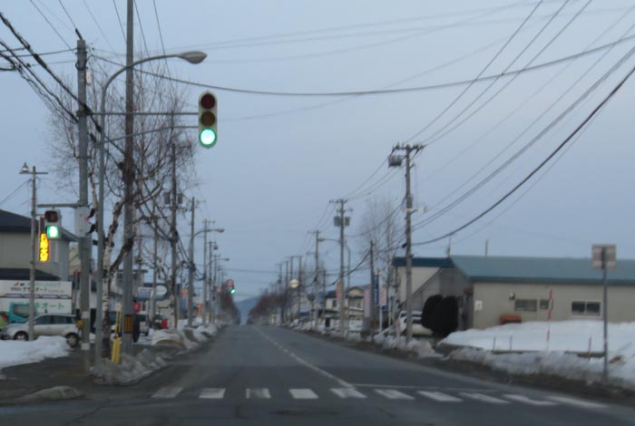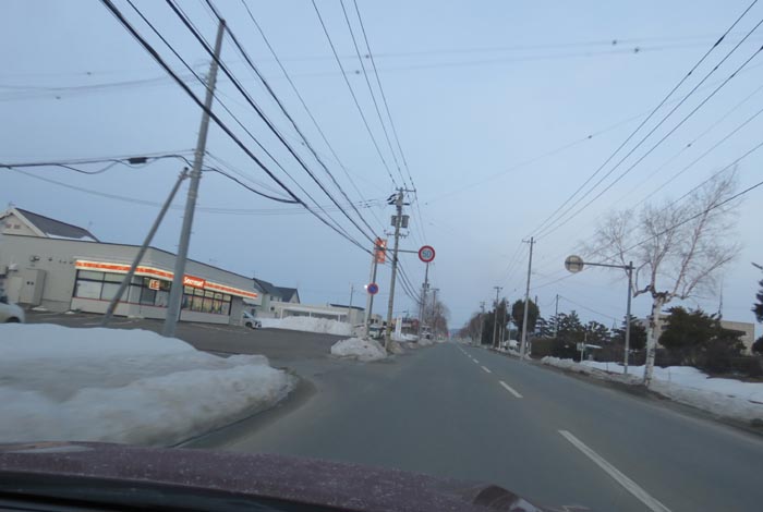 午前5時50分、南岸通り、野付牛自動車学校前から無加川町方向
