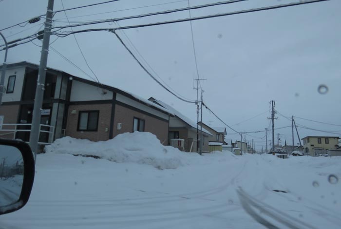 産岸通りから左折して西5号線のバス停前から北光通り方向