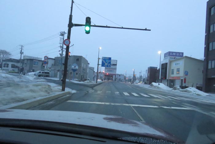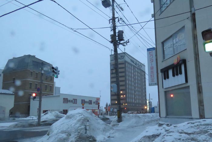 北1条通り、西4丁目通り交差点から右は跨線橋方向
