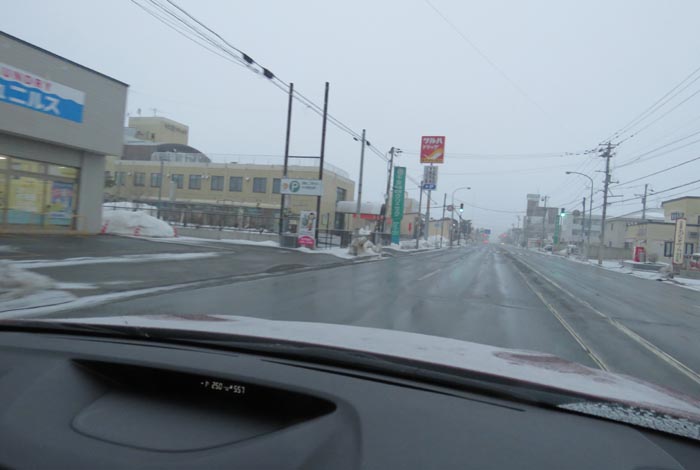 午前5時50分、国道39号の五差路から左は石北峠・旭川・札幌方面