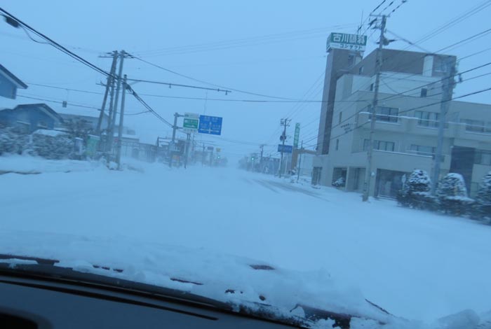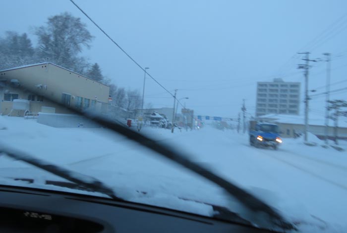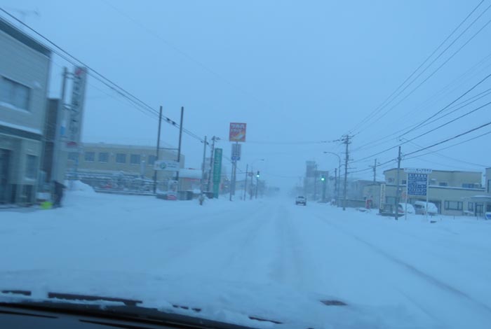 午前5時50分、国道39号の五差路から左は石北峠・旭川・札幌方面