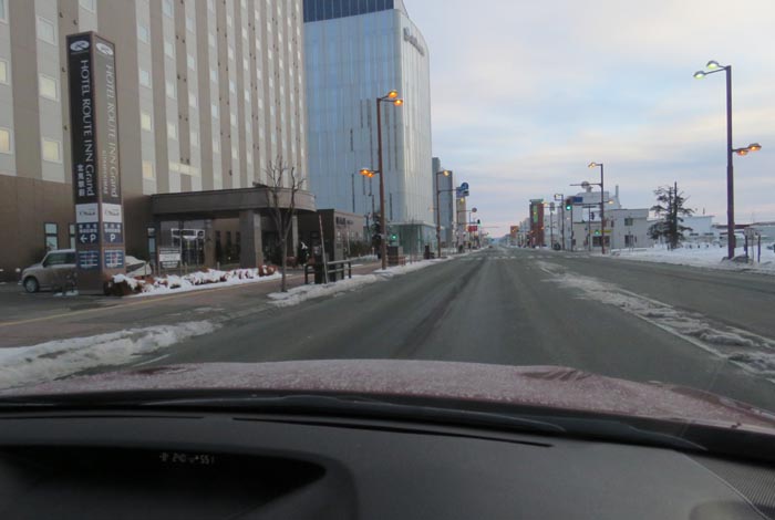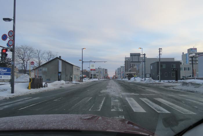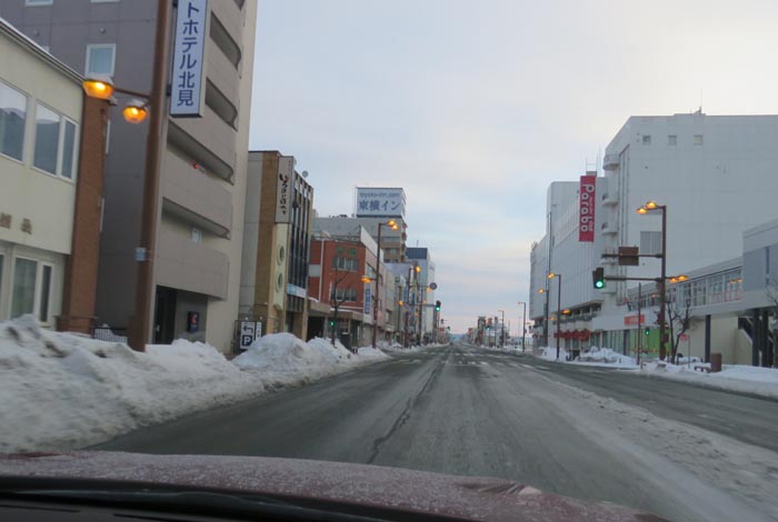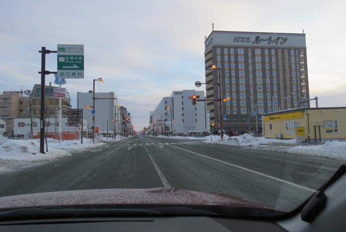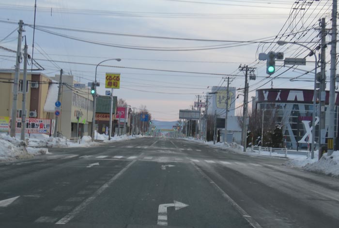 国道39号、五差路から北見駅方向