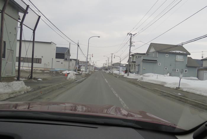 産岸通りから左折して西5号線のバス停前から北光通り方向