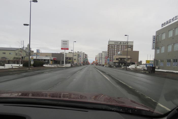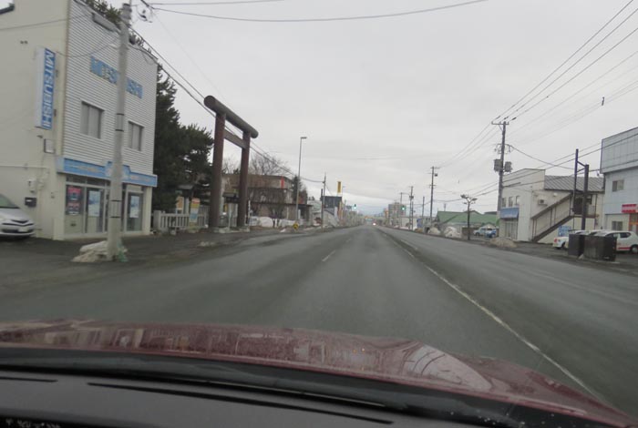 国道39号、北見神社の鳥居前から東9丁目歩道橋方向
