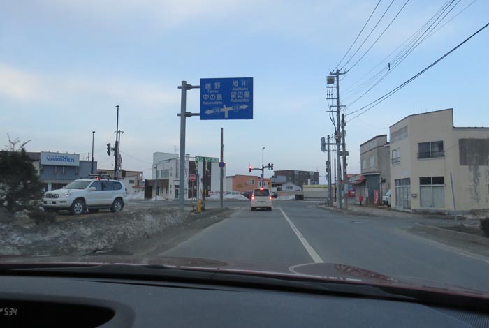 左折すると本町の国道39号交差点方向、奥がオホーツクビール方向