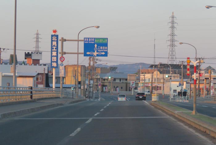 とん田通り、無加川橋を渡り錦町の南岸通り交差点