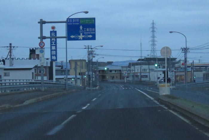 午前5時10分、西3号線とん田通りの北見中央病院横から無加川橋方向