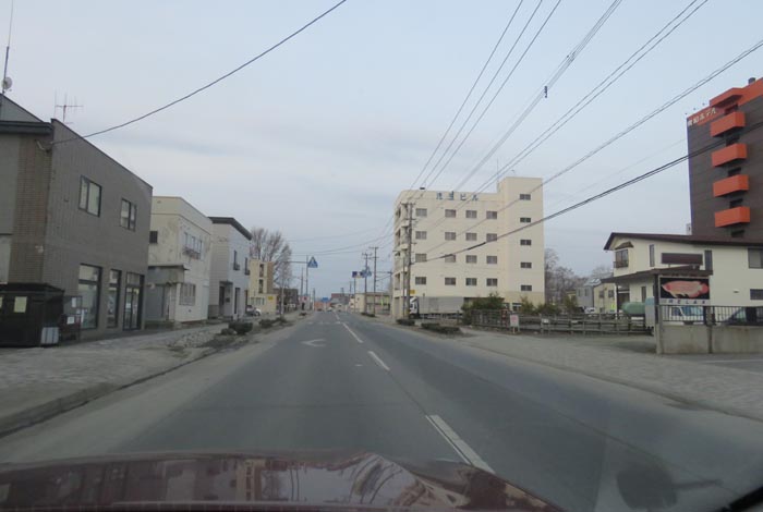 左折すると本町の国道39号交差点方向、奥がオホーツクビール方向