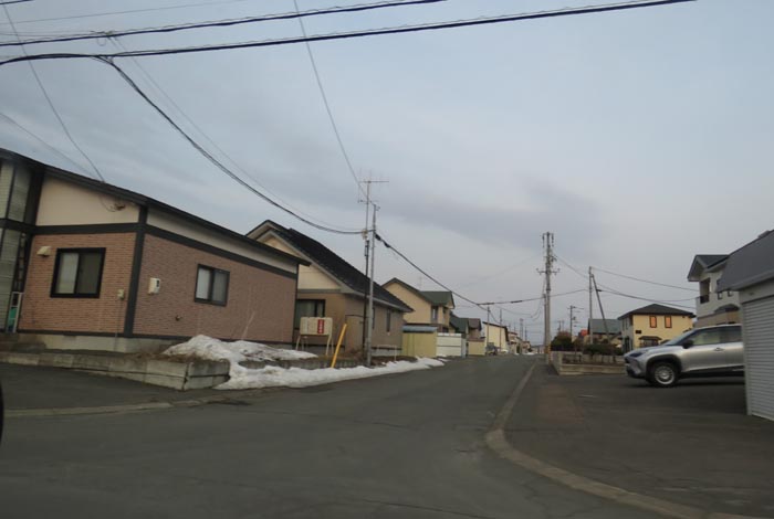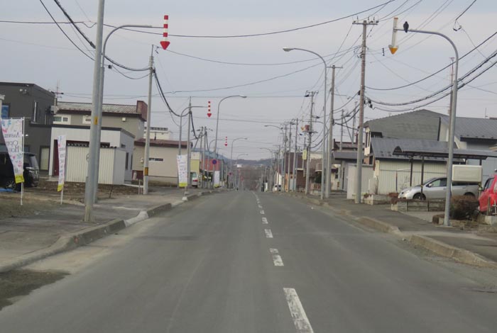 産岸通りから左折して西5号線のバス停前から北光通り交差点方向