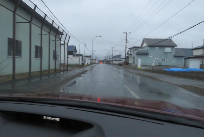 産岸通りから左折して西5号線のバス停前から北光通り交差点方向