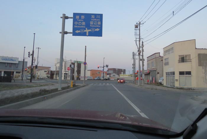左折すると本町の国道39号交差点方向、奥がオホーツクビール方向