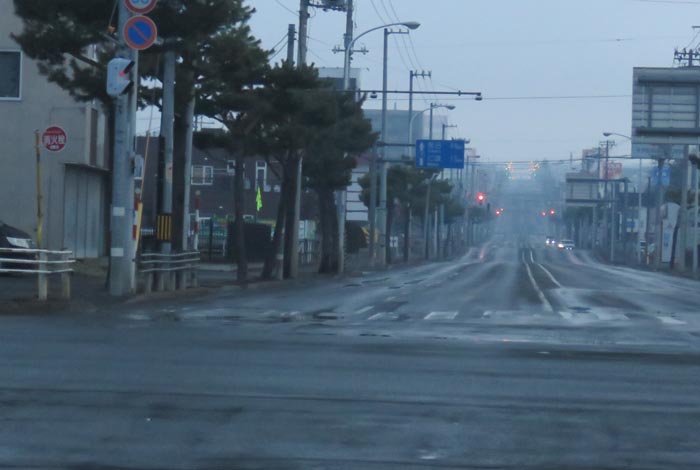 午前4時40分、西5号線、前方は南岸通りの交差点